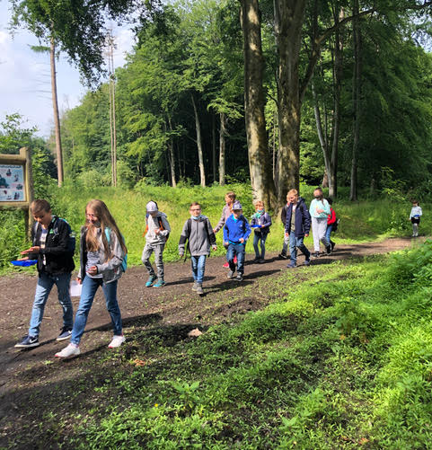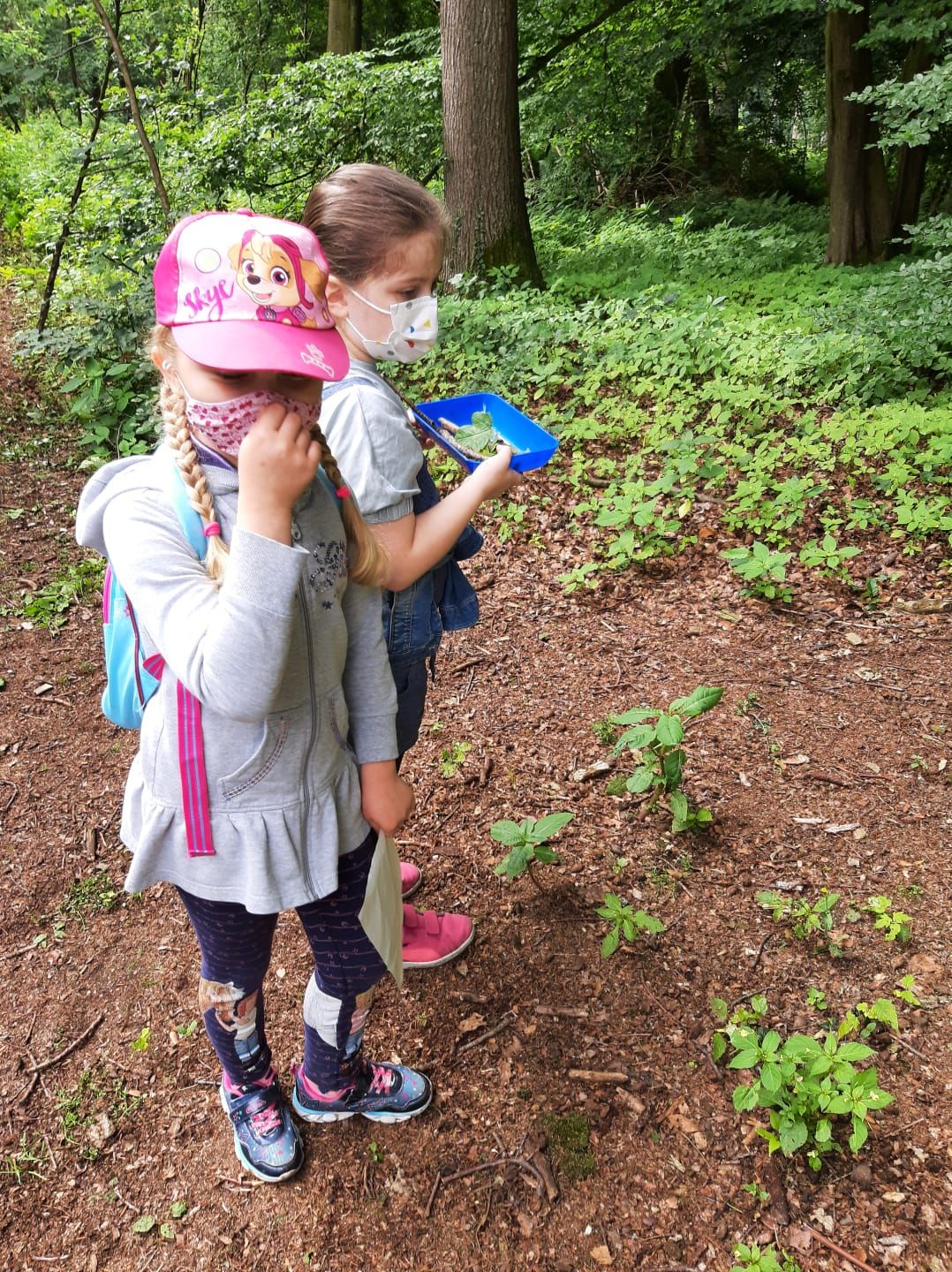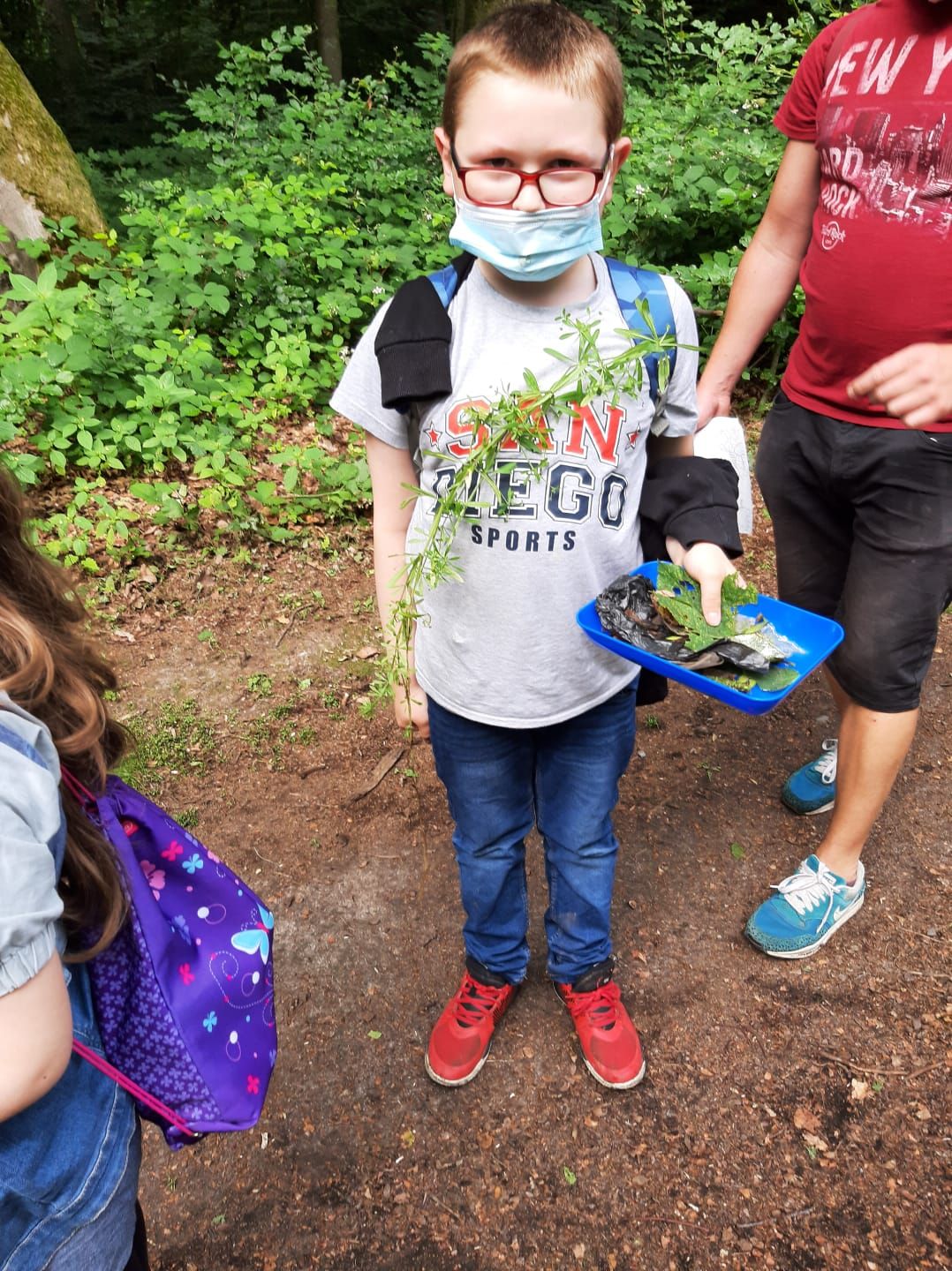 Danach ging es auf einen Rundkurs in den Stadtwald, wo es viel zu sehen, zu tasten und zu riechen gab. Die Schülerinnen und Schüler sammelten verschiedene  Objekte, die später gemeinsam bestimmt und ausgewertet wurden. Viele Fragen konnten schon vor Ort beantwortet werden.