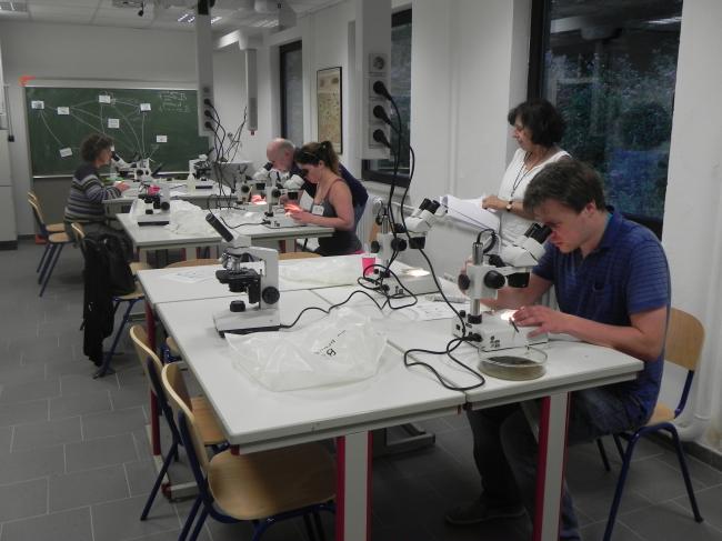 Der schmissige Titel für diese Fortbildung erfüllte alle Erwartungen der Teilnehmer, denn es wurde deutlich, welches Leben sich im Moos befindet. Unter dem Binokular und unter dem Mikroskop zeigten sich unter anderem Fadenwürmer, Wimperntierchen, Rädertierchen und Bärtierchen. Marco Hagedorn unterstützte die interessierten Pädagogen dabei, die Lebensgemeinschaft Moos kennenzulernen. Dass zwischen den Lebewesen zahlreiche Nahrungsbeziehungen bestehen, aus denen sich ein sehr komplexes Nahrungsnetz ergibt, entdeckten die Teilnehmer eigenständig mithilfe der vorbereiteten Arbeitsmaterialien. Hierbei entstand ein interessantes Tafelbild.