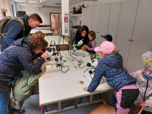 Gemeinsam erforschten die Kinder und die Erwachsenen den Wald anhand von Spielen. Es wurden bestimmte Dinge aus dem Wald gesucht und nachempfunden, wie das Eichhörnchen seinen ärgsten Feind, den Marder früh genug hören und somit fliehen kann. In den Räumlichkeiten des Waldlabors konnten die Besucher durch ein Binokular schauen und Waldtierrätsel lösen.